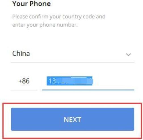 2、输入手机号点击"next"