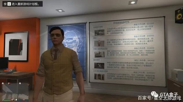 抢劫系列:玩家进入游戏就去赚钱,有了钱就马上入手一套公寓,这时玩家就可以自己开抢劫差事赚钱了。这些差事大部分没有难度,只有最后一个差事,难度最高一点,属于白送钱系列。