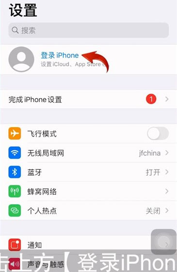 1、首先,打开手机桌面上的设置,在顶部我们可以看到icloud,如果你还没有登录你的Appleid,这里会显示“登录iPhone”,我们点击它。
