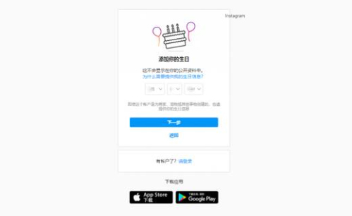 接下来,Instagram会要求你设置你的生日信息,建议选填超过18岁年龄,这样你才能浏览Ins上所有的图片