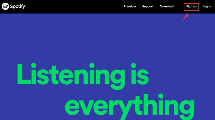 (1)我们打开Spotify官网:www.spotify.com,点击右上角“Sign Up”按钮。