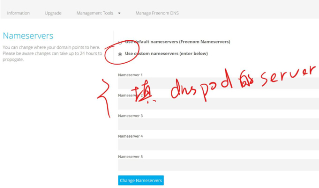 大家在注册的时候应该也能体会到,freenom的服务器是比较慢的。所以我们要把域名迁移到其他地方。例如国内的Dnspod(可能要备案),或者国外的cloudflare(无需备案)。