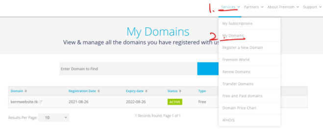 回到freenom的控制台,管理域名
