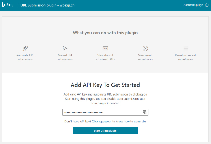 设置页面非常简单,填写好 API 秘钥,点击Start using plugin按钮!