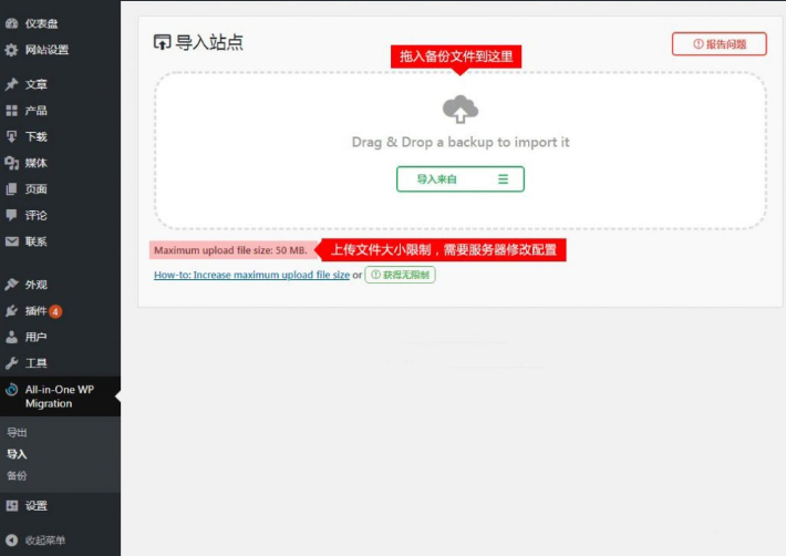 如何解决WordPress搬家插件All-in-one wp Migration出现导入文件大小限制问题?