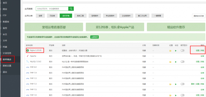 1.打开宝塔面板 – 软件管理 – 运行环境