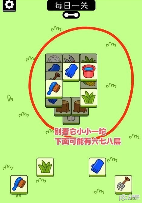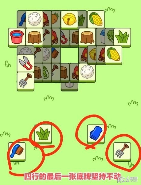大家可以看到今天布局下面有四行牌,你只能看它首张的样子,完全不能推测下一-张所以小技巧第一条先消下面这四行的牌,一直消到只剩最后一张!