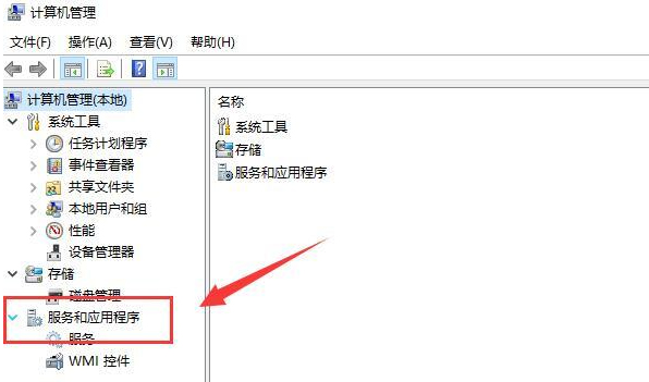 2、接着在弹出的“计算机管理”窗口中,点击“服务和应用程序”,下方就会出现“服务”;