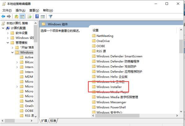 3、然后我们在此页面中依次打开“计算机配置”-“管理模块”-“windows组件”-“windows installer”;
