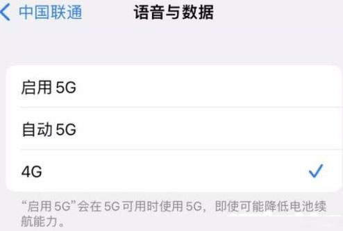 如果iPhone 12或iPhone 13系列手机容易发热,我们可以看看手机是否默认开启 自动5G 功能,我们会打开设置-蜂窝网络-语音和数据,然后选择4G关闭。5G虽然快,但也会增加功耗。虽然很多5G手机电池容量比4G手机大,但是耗电更快。其实5G是一个重要原因。5G一直开着,手机也很热,不需要用超快数据的时候我们可以关掉5G。