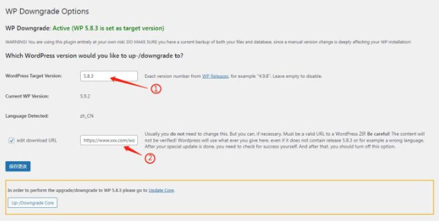 后台插件搜索:WP Downgrade | Specific Core Version