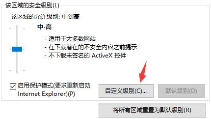 2、然后在安全下点击自定义级别;