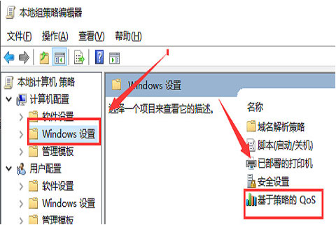 2.然后,在点击“windows设置”选项,在找到“基于策略的Qos”选项;
