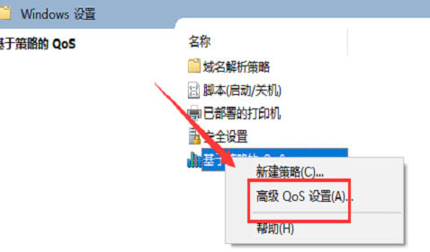 3.接着,右键点击“基于策略的Qos”选项,选择“高级Qos设置”;