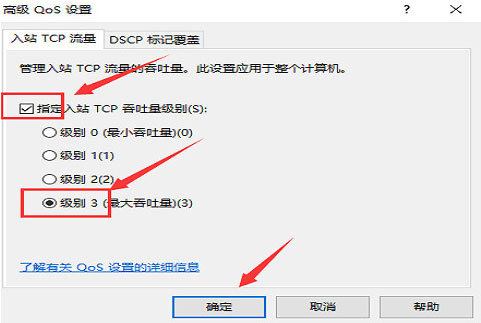 4.勾选“指定入站tcp吞吐量级别”,选择“级别3”,点击“确定”;