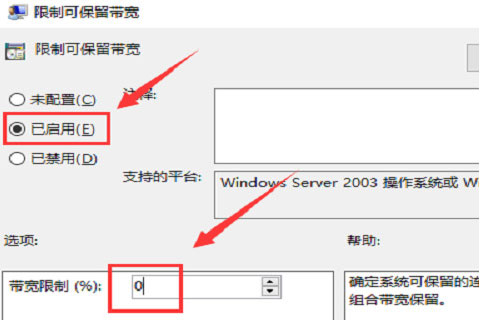 6.最后,选择“已启用”将带宽限制设定为“0”,点击“确定”就可以了。
