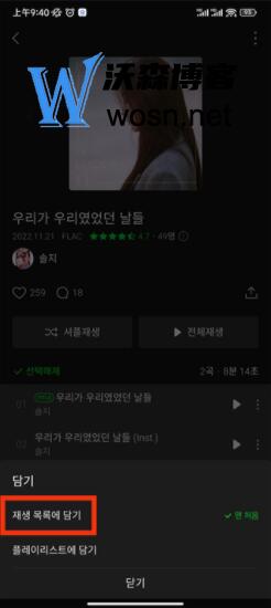 之后全选专辑,当颜色变灰即为歌曲被选中,选中后点击添加。如图所示。